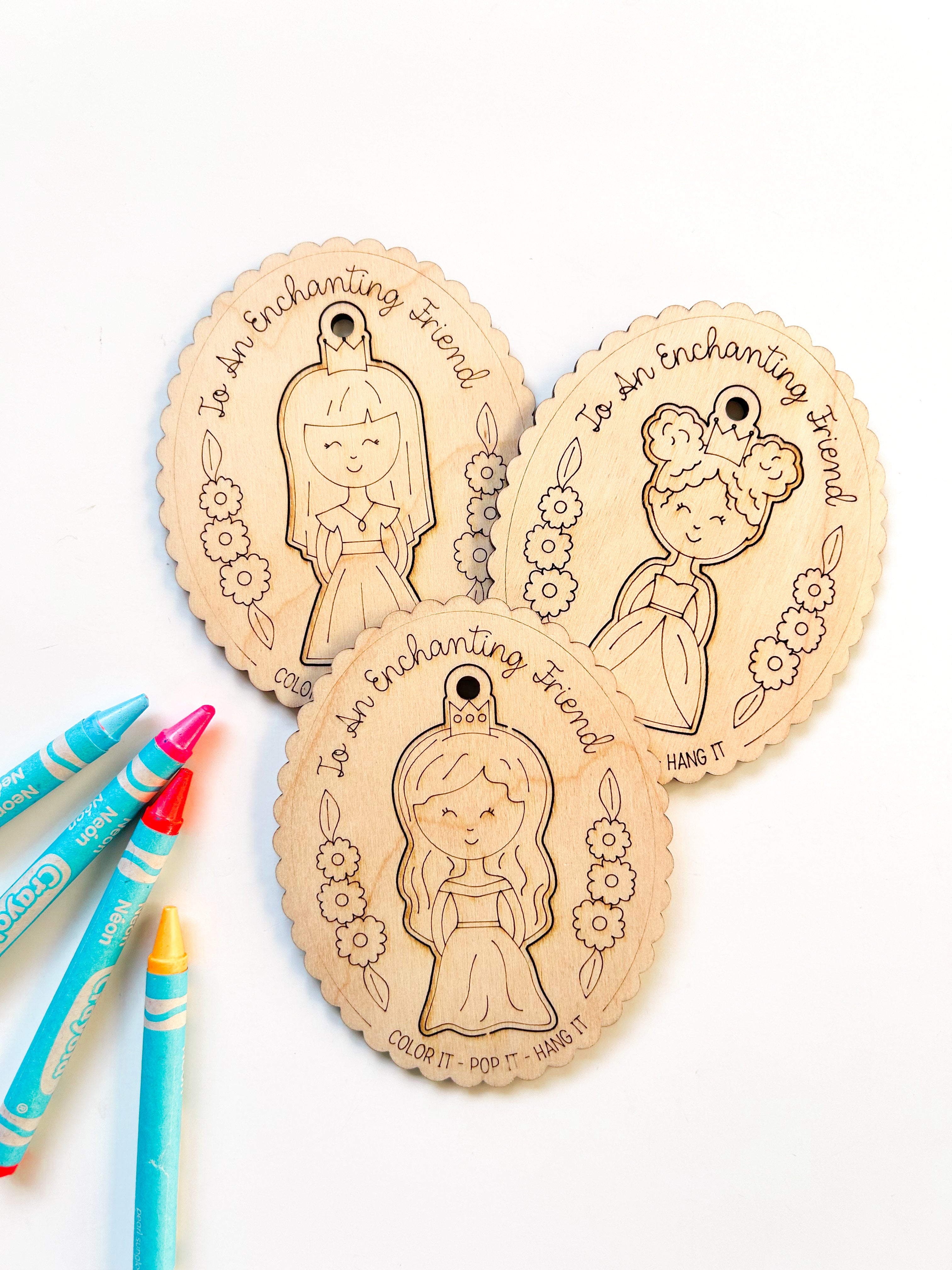 +Card comes with princess ornament that you color, pop out, & can hang! No crayons included. color with crayons, markers, colored pencils, or paint.