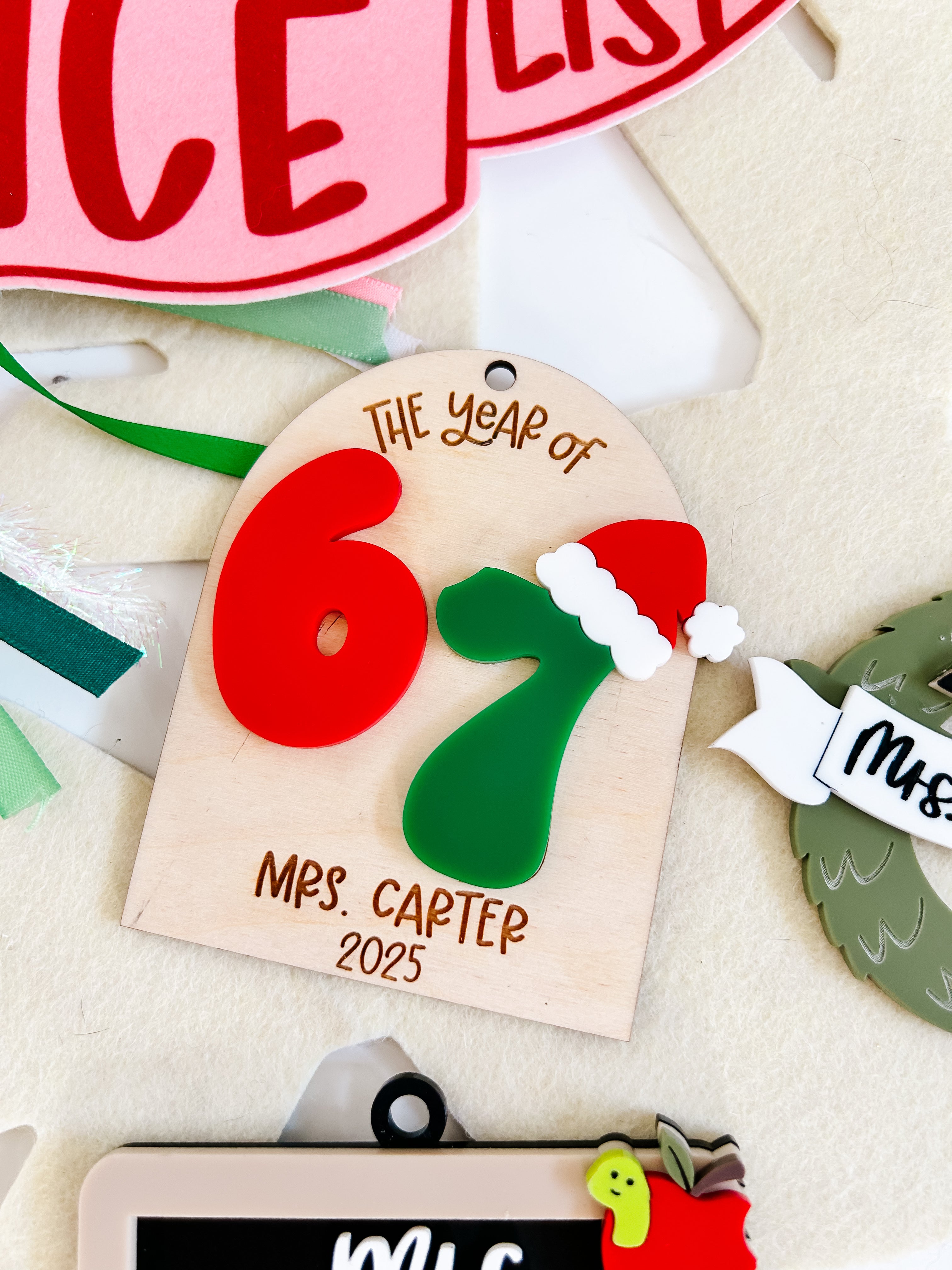 Acrylic ornament with teacher name. Perfect for a Christmas gift.
