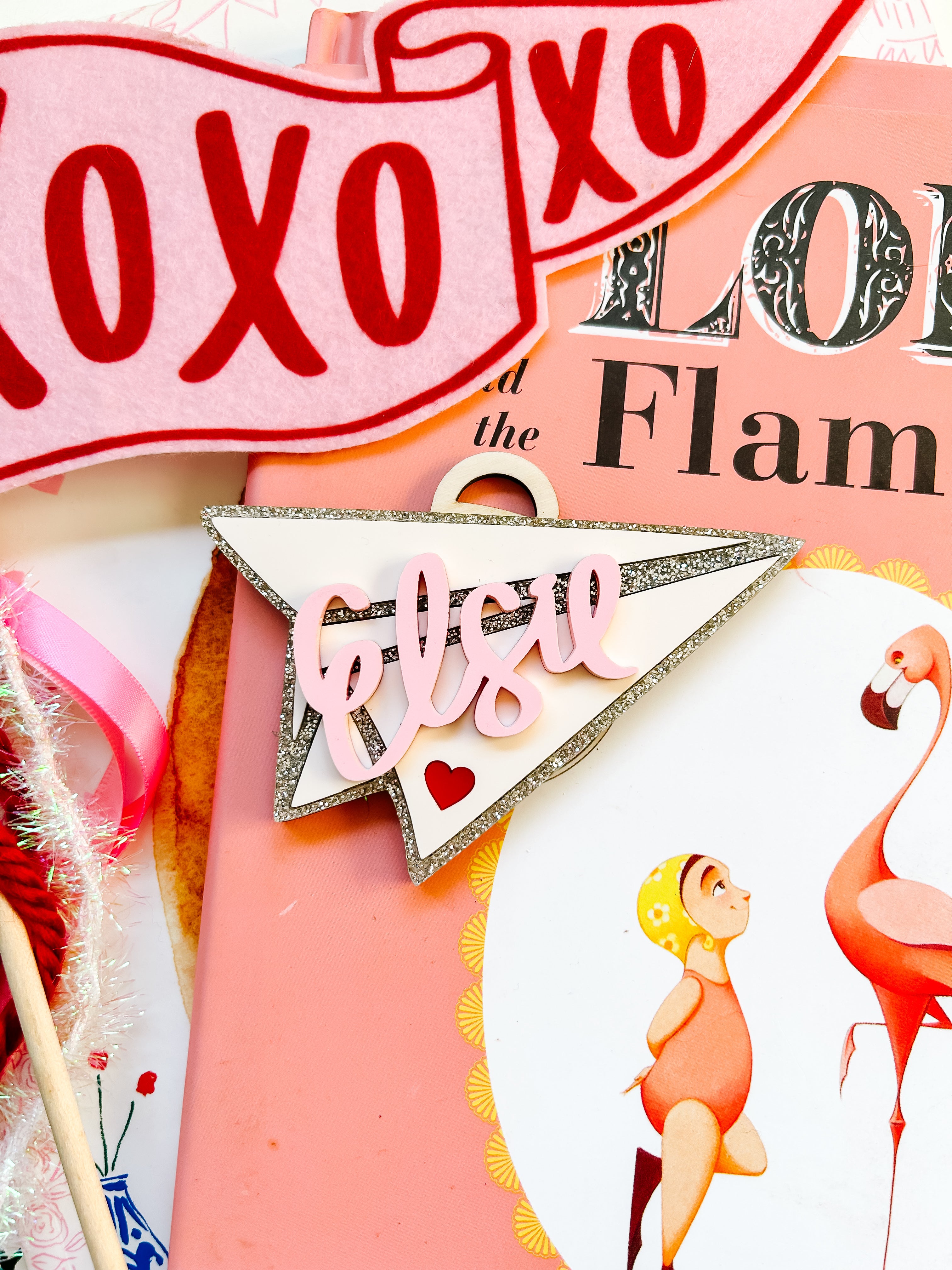 acrylic tag, perfect for a love basket for Valentines day! Basic white yarn included for tying. Choice of glitter rectangle border