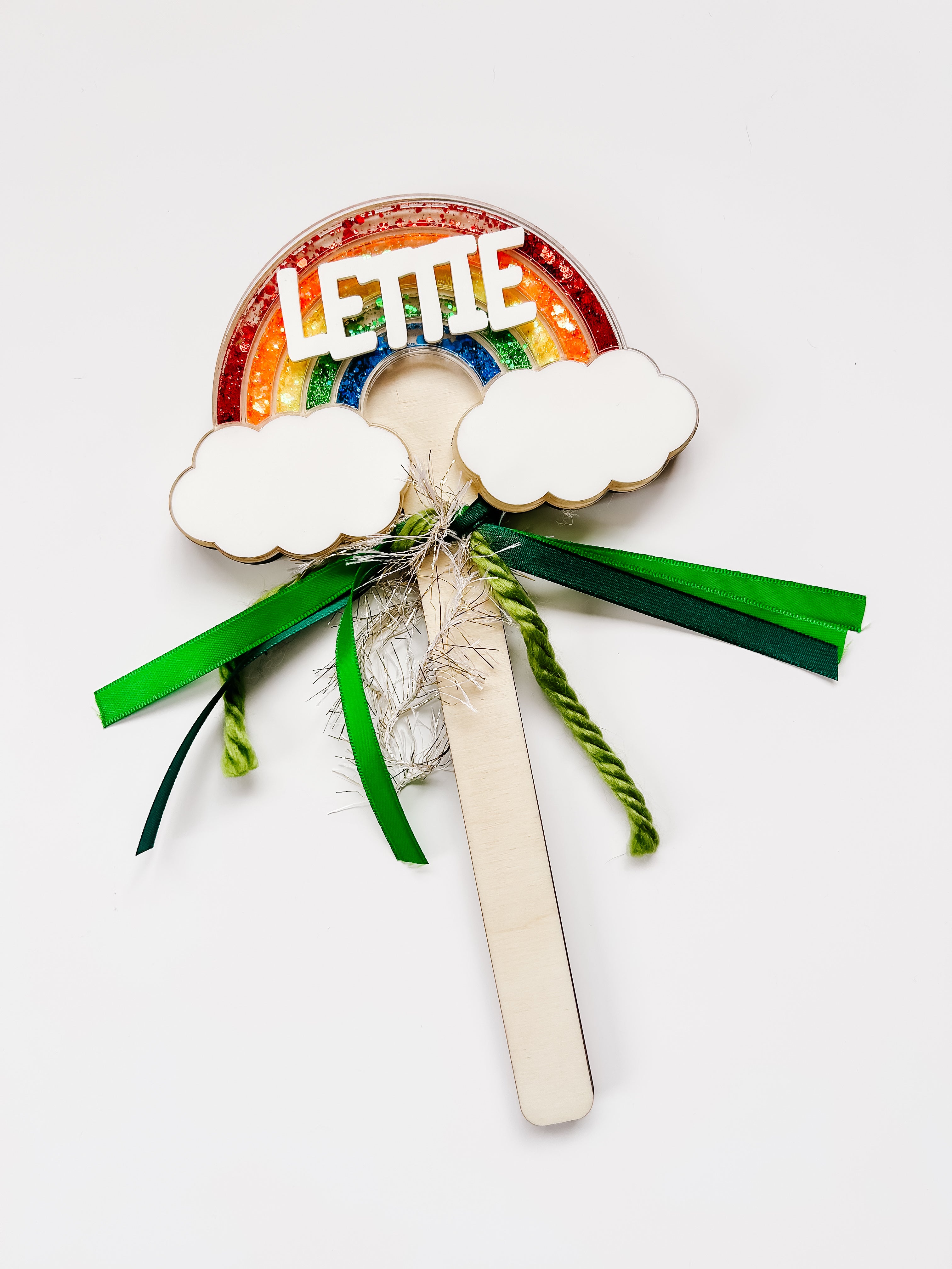 Wooden wand with acrylic tutu. Name added with choice of font. Perfect to stick in a bouquet of flowers or to gift as is for your dancer.